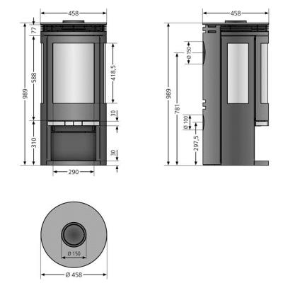 Le Rota Tre 2.0 se distingue par son design circulaire et sa vision à trois faces, offrant une vue panoramique sur les flammes. Cette conception unique sublime le spectacle du feu, créant une ambiance chaleureuse et apaisante dans votre espace de vie. La grande vitre galbée et l'intérieur en vermiculite profilée permettent de maximiser la visibilité des flammes tout en assurant une combustion optimale.