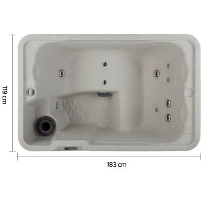 Le modèle Mini pour deux personnes s'adapte parfaitement à n'importe quel balcon, patio ou terrasse de chambre parentale, ce qui vous permet de transformer rapidement n'importe quel espace en une oasis privée. Allongez-vous dans la place allongée ou asseyez-vous côte à côte avec votre partenaire. Dans tous les cas, vous profiterez des 10 jets stratégiquement placés et d'un plateau d'accessoires amovible.