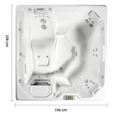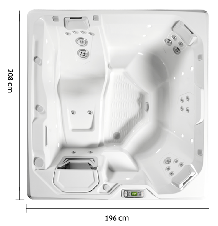 Le nouveau Strobe™ possède 23 jets et dispose de quatre places, y compris une place allongée. Mesurant seulement 208 × 196 × 84 cm, le Strobe est idéal pour les espaces restreints ; c'est le modèle Limelight® le plus petit avec une place allongée et il est compatible avec le système au sel FreshWater®.