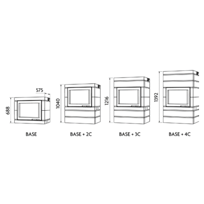 Le poêle à bois XP54 Box Ollaire est disponible avec 1, 2, 3 ou 4 ceintures, ce qui le rend évolutif en termes de taille.