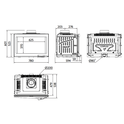 LORFLAM XP78 : Largeur 78 cm – bûches 60 cm – 14 kW